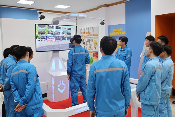 太倉海螺安全宣教室內(nèi),二級部門兼職安全員、新進員工正在參加公司組織的沉浸式安全生產(chǎn)體驗活動,通過VR互動模擬火災(zāi)、觸電、高空墜落、起重傷害等事故場景,身臨其境感受違章行為導致的嚴重傷害,學習掌握危急情況下正確的應(yīng)急處置措施。參加體驗的員工緊握操作手柄,神情專注、小心翼翼地轉(zhuǎn)換方向,并不時發(fā)出驚嘆。圍觀的員工也捏了把汗,紛紛出謀劃策、助力“通關(guān)”。