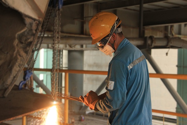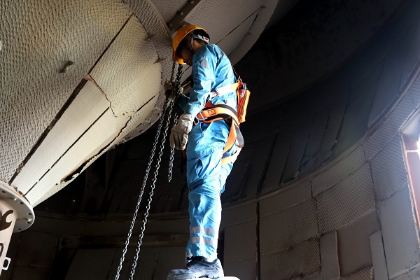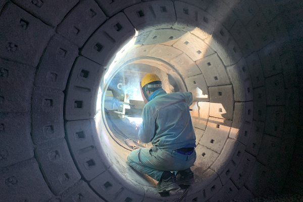 窯檢修現(xiàn)場,機械維修工張紅勝全神貫注地操作著氣割槍,即便得心應手,他也始終保持謹慎與專注。(王凱/攝)