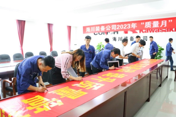 “一筆一劃簽下的不僅是自己的姓名,還有對質(zhì)量的承諾?!眻D為梁平海螺、全椒海螺、海川裝備廣大員工在“質(zhì)量月”橫幅上簽名,發(fā)出“人人關(guān)心質(zhì)量、人人重視質(zhì)量、人人追求質(zhì)量”的倡議。