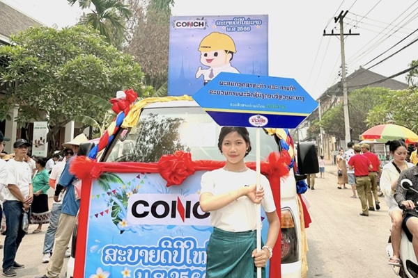 4月14日下午,節(jié)日當(dāng)天,瑯勃拉邦一下就熱鬧了起來,拜佛、浴佛、潑水、栓線、布施、堆沙、放生、游行等各類活動(dòng)輪番上演,人們的歡呼聲、掌聲和潑水聲交織在一起,仿佛整個(gè)瑯勃拉邦城都要被人們辭舊迎新的歡樂氣氛所淹沒。裝扮著海螺CONCH Logo和佛歷2566年祝福的花車領(lǐng)頭,60名身穿海螺文化衫的巡游隊(duì)伍慢行著經(jīng)過瑯勃拉邦著名的法國街,街邊圍觀的人群熙熙攘攘?!翱烨疲鞘俏覀冎袊髽I(yè)的隊(duì)伍!”一名中國游客手指海螺水泥游行方隊(duì)激動(dòng)地說,“我知道你們海螺水泥,在這里能夠看見中國自己的企業(yè),感覺很親切,也很自豪?!?/span>
