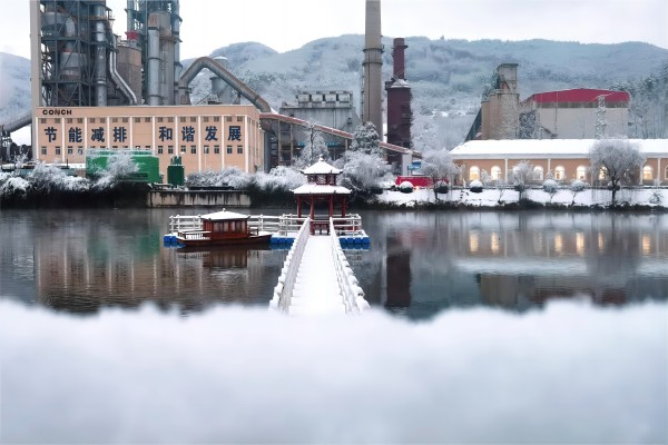 雪后初晴,陽光灑滿雪地,熠熠生輝,整個水泥廠仿佛被過濾了一般,空氣清新,視野開闊,一條條生產(chǎn)線正有條不紊地運行,設(shè)備吞吐著熱氣,員工踏雪穿行,留下一串串腳印,展現(xiàn)出一幅繁忙且有序的生產(chǎn)畫卷。走過廠房,瓊枝玉樹,潔白的霜花掛滿枝頭,在陽光的照射下,銀光閃爍,美麗動人;行走在林間小道,看那尚未凋零的草木,遇雪成冰,白色與翠綠相間,紅黃點綴,嵌入一抹冬的生機。
