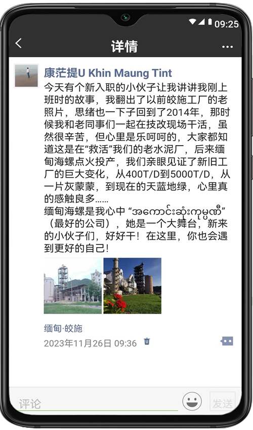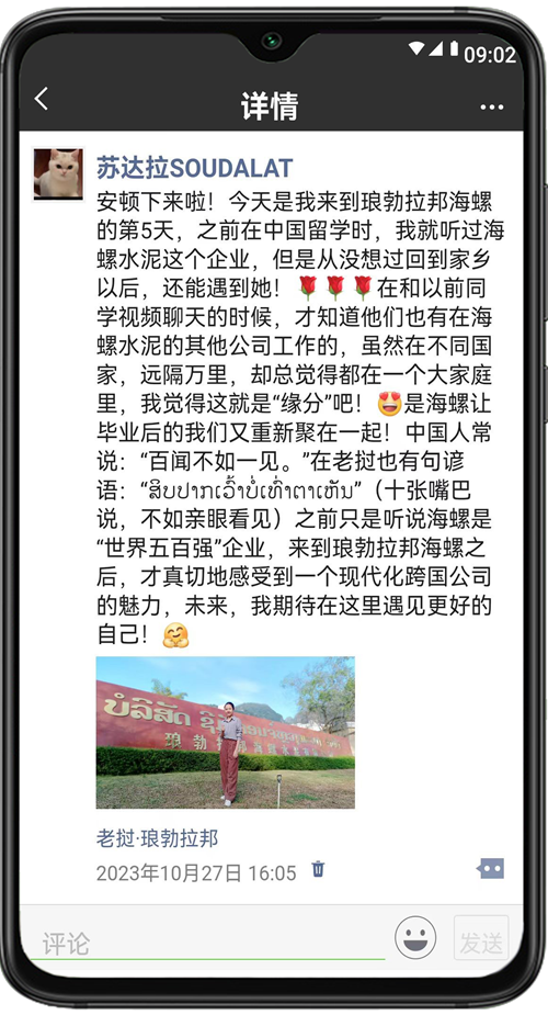 2023年是共建“一帶一路”倡議提出十周年,十年來(lái),海螺水泥堅(jiān)持人才“本地化”培養(yǎng),現(xiàn)在,海螺的大家庭里已有3000多名外籍員工,他們見(jiàn)證了一座座海螺工廠的拔地而起,還親身經(jīng)歷了海螺發(fā)展帶來(lái)的變化,在海螺收獲了成長(zhǎng)和友誼。現(xiàn)在,就讓我們打開(kāi)“朋友圈”,一起來(lái)看看他們的分享吧!
