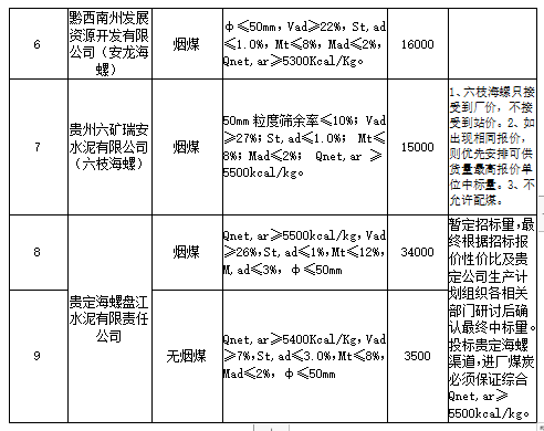 海螺水泥貴州區(qū)域擬對2021年10月21日至2021年11月20日生產(chǎn)用煤炭進行公開招標(biāo),選定中標(biāo)單位,現(xiàn)將相關(guān)招標(biāo)事宜公示如下: