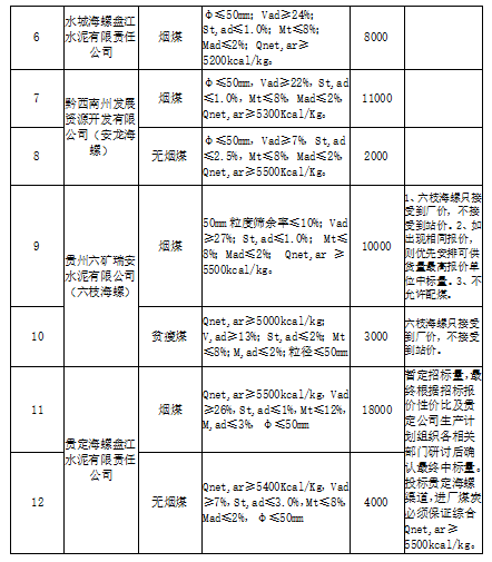 1.煙煤新客戶首次投標(biāo)量不允許超過(guò)3500噸(原則上一個(gè)整列),無(wú)煙煤新客戶首次投標(biāo)量不允許超過(guò)5000噸,且均只能投標(biāo)一家海螺公司(2020年1月-2021年10月期間未向海螺水泥貴州區(qū)域形成實(shí)質(zhì)性煙煤、無(wú)煙煤供貨的客戶均視為煙煤、無(wú)煙煤標(biāo)的投標(biāo)新客戶),原則上投標(biāo)可供量不得小于3000噸,但考慮安龍海螺本次無(wú)煙煤僅招標(biāo)2000噸,因此安龍海螺無(wú)煙煤投標(biāo)量不予限制。