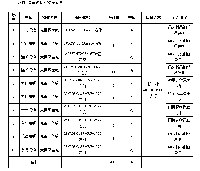 1、招標(biāo)項(xiàng)目名稱(chēng):光面鋼絲繩
