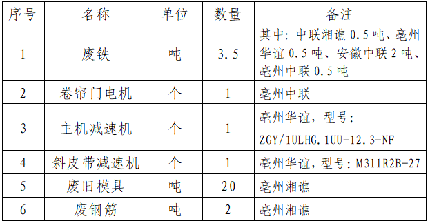 安徽海螺綠色新型材料有限公司擬對下屬子公司廢舊物資進(jìn)行公開招標(biāo),選定中標(biāo)人。現(xiàn)將相關(guān)事宜公告如下: