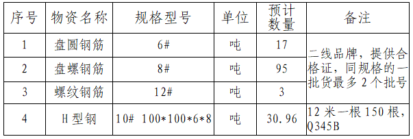 3.本次招標要求投標人公司經(jīng)營范圍需涵蓋鋼材、金屬材料生產(chǎn)或銷售資質(zhì),具備獨立承擔民事責(zé)任能力。