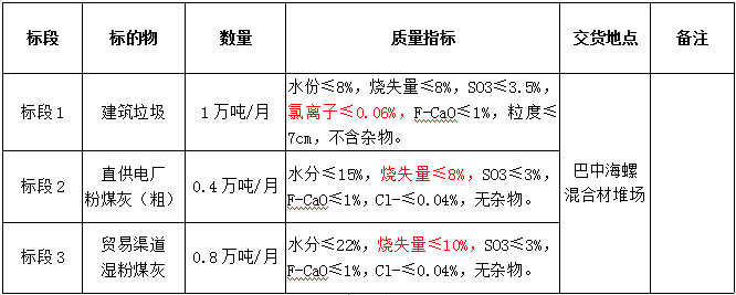 5.投標(biāo)報(bào)名單位需具有較強(qiáng)的保供能力,其中建筑垃圾月供貨能力不低于0.5萬(wàn)噸;粉煤灰投標(biāo)渠道若為直供,不設(shè)置最低供貨量,若為貿(mào)易渠道,月供貨能力不低于0.3萬(wàn)噸,且貿(mào)易渠道貨源不能為四川廣旺電力公司嘉川電廠、代池壩電廠和南江煤電公司粉煤灰資源。