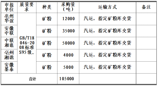 3.2022年4月至12月份礦粉計(jì)劃采購量10.5萬噸,具體如下: