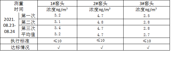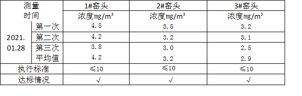 公司產(chǎn)生的廢氣污染物主要是石灰石破碎、轉(zhuǎn)運,生料粉磨、熟料冷卻、熟料粉磨、熟料發(fā)散、水泥包裝、散裝等工序產(chǎn)生的粉塵,熟料煅燒過程中產(chǎn)生的煙塵、氮氧化物、二氧化硫。各工序產(chǎn)生的粉塵及煙塵經(jīng)高效袋式除塵器處理后通過排氣筒達標排放,二氧化硫及氮氧化物分別通過脫硫、脫硝設施處理后達標排放。經(jīng)巢湖市環(huán)境監(jiān)測站監(jiān)督性監(jiān)測和第三方監(jiān)測機構每季度自行監(jiān)測,我公司在生產(chǎn)過程中產(chǎn)生的廢氣污染物排放濃度能夠達到安徽省《水泥工業(yè)大氣污染物排放標準》  (DB34/3576-2020)的排放限值要求,廠界大氣污染物濃度、氨、噪聲等檢測結(jié)果均達標。