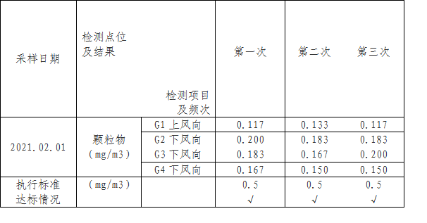 2021年1季度無組織檢測結(jié)果及評價表