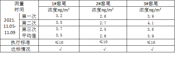 7、2021年,巢湖市環(huán)境監(jiān)測站對我公司開展了季度監(jiān)督性監(jiān)測工作,監(jiān)測數(shù)據(jù)均達標,2021年全年我公司窯頭、窯尾自動監(jiān)測污染物日均數(shù)據(jù)均達標;
