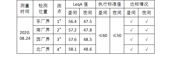 我公司3×4500t/d生產(chǎn)線在建設過程中嚴格落實環(huán)評要求,采取了基礎減震、除塵器出口加裝消聲器等噪聲控制措施,較好的控制了噪聲排放,2019年公司投資伍佰多萬元對廠界噪聲進行了治理,確保在生產(chǎn)運行過程中做到了噪聲排放不擾民,并且公司周圍沒有環(huán)境敏感點,不會造成噪聲污染,公司委托安徽工和環(huán)境監(jiān)測有限責任公司每季度進行一次廠界噪聲監(jiān)測,廠界噪聲檢測均達標。