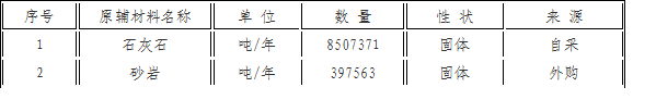我公司生產(chǎn)產(chǎn)品主要消耗的原材料為石灰石及砂巖,2021年消耗情況如下: