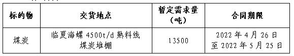 為做好我公司2022年5月份煤炭采購工作,滿足生產(chǎn)需要,本著“公開、公平、公正”的原則,擬對煤炭貿(mào)易渠道供貨進(jìn)行公開招標(biāo),現(xiàn)將招標(biāo)采購信息發(fā)布如下:
