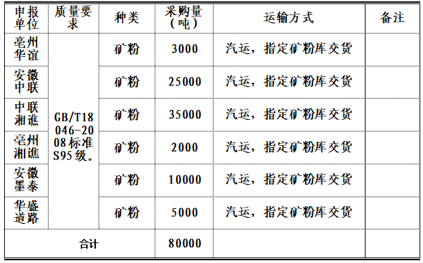 3.2022年6月至12月份礦粉計劃采購量8萬噸,具體如下: