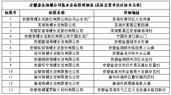 安徽荻港海螺水泥股份有限公司擬對安徽地區(qū)13家基地子公司(蕪湖海螺、荻港海螺、白馬廠、寧國廠、宣城海螺、銅陵海螺、池州海螺、樅陽海螺、懷寧海螺、宿州海螺、全椒海螺、巢湖海螺、耐火材料)2022-2024年度氨水進(jìn)行聯(lián)合招標(biāo)采購,為進(jìn)一步體現(xiàn)公開、公平、公正、擇優(yōu)的原則,拓寬采購渠道,保證采購質(zhì)量,現(xiàn)將招標(biāo)采購信息發(fā)布如下: