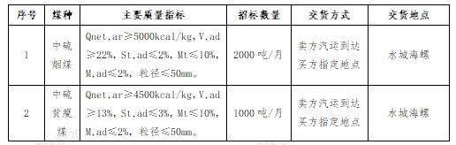 1.標的內(nèi)容:中硫煙煤、中硫貧瘦煤