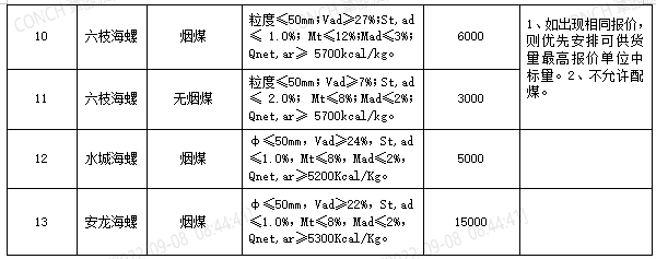 5. 2022年8月21日至2022年9月20日合同期內(nèi),若中標(biāo)單位在2022年9月6日24時前(銷發(fā)系統(tǒng)進廠數(shù)量)小于合同約定量的30%的,不予參與海螺水泥貴州區(qū)域2022年9月21日至2022年10月20日煤炭招標(biāo)(僅買方原因或不可抗力因素除外,鐵路在途和在站煤炭不給予納入供貨量,僅以進廠數(shù)量為準(zhǔn)),并取消在貴州區(qū)域所有海螺6個月內(nèi)的投標(biāo)資格。