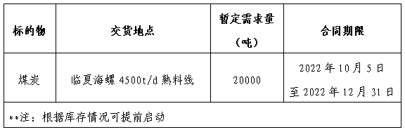 為做好我公司2022年煤炭采購工作,滿足生產(chǎn)需要,本著“公開、公平、公正”的原則,擬對煤炭直供渠道供貨進(jìn)行公開招標(biāo),現(xiàn)將招標(biāo)采購信息發(fā)布如下: