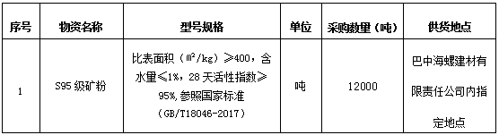 為進(jìn)一步提升S95級礦粉采購招標(biāo)的公平、公正、公開透明性,根據(jù)巴中海螺建材(商混)生產(chǎn)礦砂礦粉需求情況,現(xiàn)組織開展S95級礦粉公開招標(biāo),特將招標(biāo)事宜公告如下: