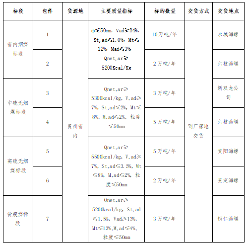2.投標(biāo)人所提供礦點(diǎn)煤炭生產(chǎn)能力30萬噸/年及以上,礦點(diǎn)屬于貴州省內(nèi)資源;