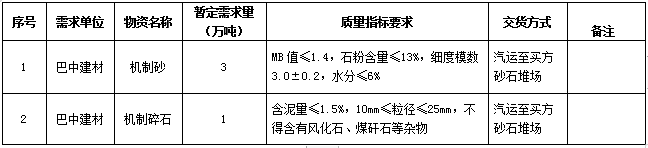 1.標(biāo)的內(nèi)容:機(jī)制砂、機(jī)制碎石