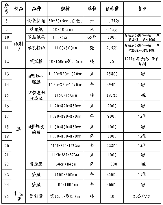 根據(jù)公司生產(chǎn)經(jīng)營計劃,為確保2023-2024年度產(chǎn)品包裝需求;現(xiàn)本著“公開、公平、公正、透明”的原則公開招標(biāo),誠邀經(jīng)營能力較好、產(chǎn)品質(zhì)量合格、保供和服務(wù)能力較強的包裝材料生產(chǎn)單位參加投標(biāo),現(xiàn)將有關(guān)事項公告如下: