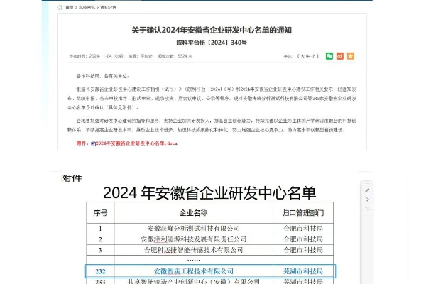 入選安徽省企業(yè)研發(fā)中心