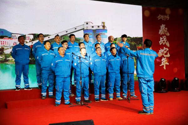 隨著晚會(huì)的正式開始,礦山分廠合唱團(tuán)穿著海螺服,精神抖擻的走上舞臺(tái),用堅(jiān)定的歌聲唱響《團(tuán)結(jié)就是力量》,體現(xiàn)了他們團(tuán)結(jié)協(xié)作、勇往直前的精神風(fēng)貌。