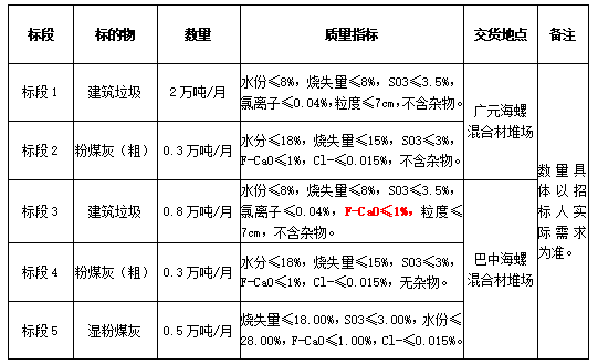 3.投標報名單位需具有較強的保供能力,其中建筑垃圾投標渠道必須為加工型企業(yè),且月供貨能力不低于0.5萬噸;粉煤灰投標渠道必須為直供渠道,粉煤灰(粗)月供貨能力不低于0.3萬噸,濕粉煤灰月供貨能力不低于0.5萬噸,同時貨源不能為四川廣旺電力公司嘉川電廠、代池壩電廠和南江煤電公司現(xiàn)階段所產粉煤灰。