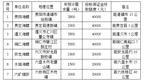 貴州區(qū)域海螺水泥7家子公司(貴陽海螺、貴定海螺、遵義海螺、水城海螺、六礦瑞安、安龍海螺、銅仁海螺)擬對2021-2022年度氨水采購進(jìn)行聯(lián)合招標(biāo),為進(jìn)一步體現(xiàn)公開、公平、公正、擇優(yōu)的原則,拓寬采購渠道,保證采購質(zhì)量,現(xiàn)將招標(biāo)采購信息發(fā)布如下:
