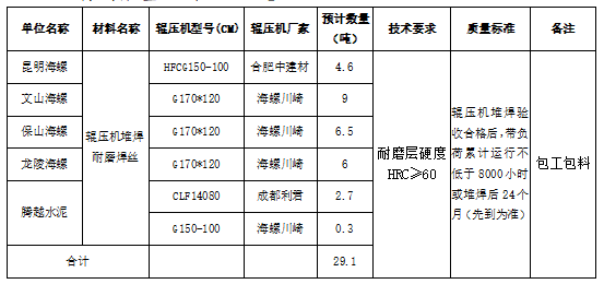 1.標(biāo)的內(nèi)容:輥壓機(jī)輥面堆焊包工包料。