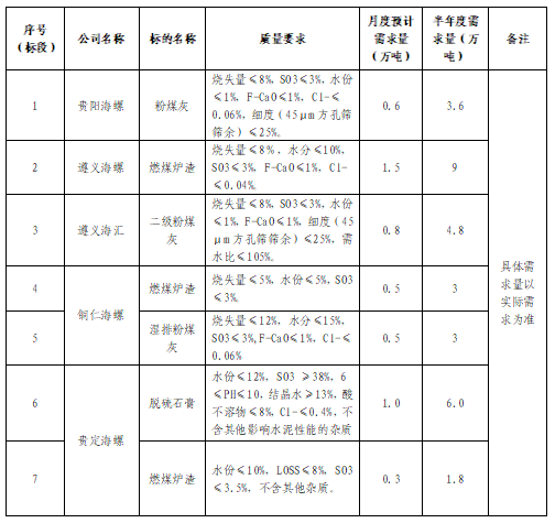 海螺水泥貴州區(qū)域擬對2022年上半年水泥生產(chǎn)用粉煤灰、燃煤爐渣、脫硫石膏進行公開招標,選定中標單位,現(xiàn)將相關(guān)招標事宜公示如下: