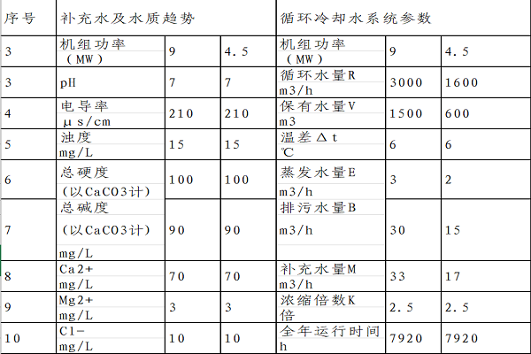 2、循環(huán)冷卻水系統(tǒng)參數(shù)和補充水及水質(zhì)趨勢判定: