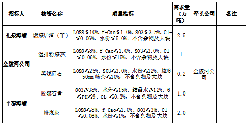根據(jù)2021-2022年淡季平?jīng)龊B?、禮泉海螺及金陵河公司生產(chǎn)經(jīng)營計劃,現(xiàn)對2021-2022年淡季部分電廠工業(yè)廢渣采購組織招標(biāo),為進(jìn)一步體現(xiàn)公平、公正、公開透明的原則,此次招標(biāo)將在安徽海螺水泥股份有限公司陽光采購平臺公開進(jìn)行,現(xiàn)將招標(biāo)采購信息發(fā)布如下: