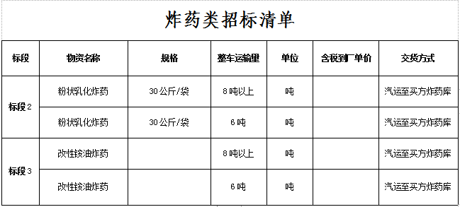 1.招標(biāo)物資名稱:改性銨油炸藥、粉狀乳化炸藥。