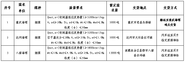 達(dá)州海螺報價要求為一票制汽運(yùn)至買方原煤堆場交貨價(含13%增值稅),賣方負(fù)責(zé)到廠卸貨到買方指定地點(diǎn);