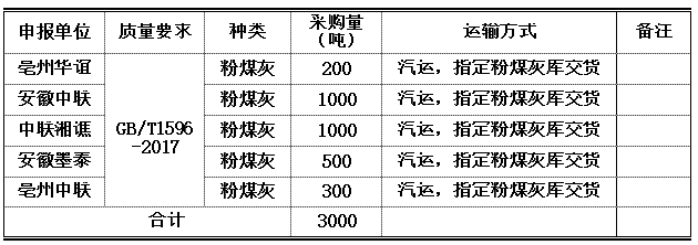 3.粉煤灰計劃采購量0.3萬噸,具體如下: