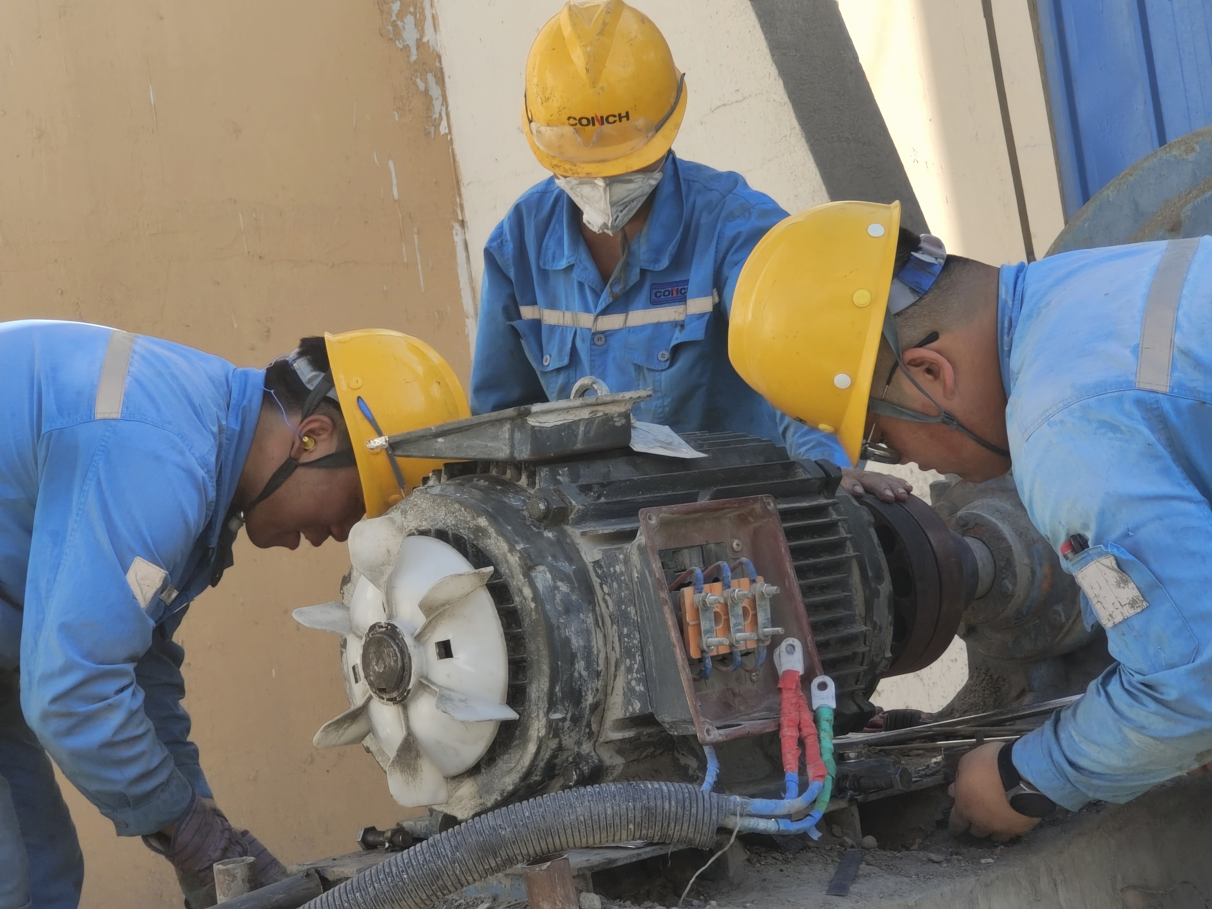 熟料B道風(fēng)機(jī)電機(jī)出現(xiàn)故障,機(jī)修人員更換恢復(fù)找正,解決收塵器風(fēng)機(jī)電機(jī)殼體底座開裂隱患。保安全,保穩(wěn)定,你們的工作很平凡卻責(zé)任重大,你們的工作繁瑣卻從不敷衍。