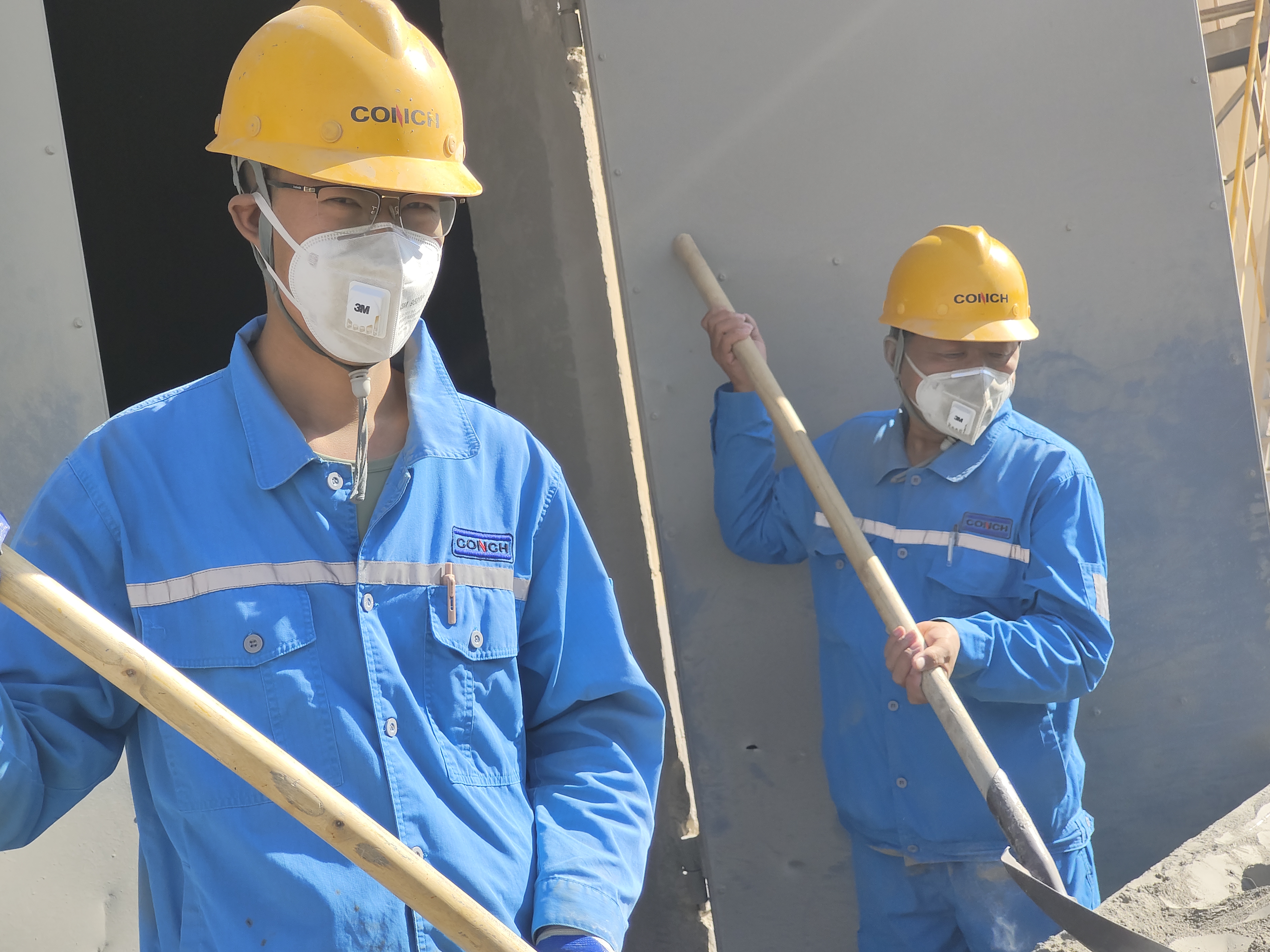 下午18:00分,窯中增壓在運(yùn)行中無壓力,保全處處長助理袁曉強(qiáng)和技術(shù)員陳長林對增壓泵進(jìn)行檢查維修,雖然已經(jīng)下午6點(diǎn),但38度的溫度,金屬會被曬得有多燙,只有他們知道。在“燒烤天”,出門1次都需要鼓足勇氣,陳長林鼻尖滴落的汗珠在地上沒一會兒就干了,他說穿著工裝頭戴安全帽在太陽下,也是蠻“酸爽”的,但是一切都是為了設(shè)備更穩(wěn)定的運(yùn)轉(zhuǎn)。