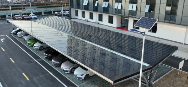 使用平面光伏瓦鋪設(shè)的停車棚頂