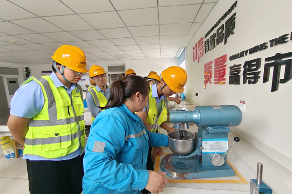 活動最后,中建西部公司一行參觀了中控樓中央控制室,了解熟料、水泥生產(chǎn)工藝流程。參觀過程中,向客人介紹了水泥質(zhì)量過程控制主要措施,并對提出的疑問進(jìn)行解答,同時與中建西部公司劉總及骨干人員就生產(chǎn)工藝、質(zhì)量管理工作進(jìn)行相互探討交流,全方位了解了海螺水泥生產(chǎn)原燃材料、生產(chǎn)工藝、質(zhì)量控制、指標(biāo)管控及銷售和售后服務(wù)流程方面的內(nèi)容,并開展了水泥標(biāo)準(zhǔn)稠度技能比拼,雙方在熱烈友好、積極融合的氣氛下結(jié)束了此次交流活動。